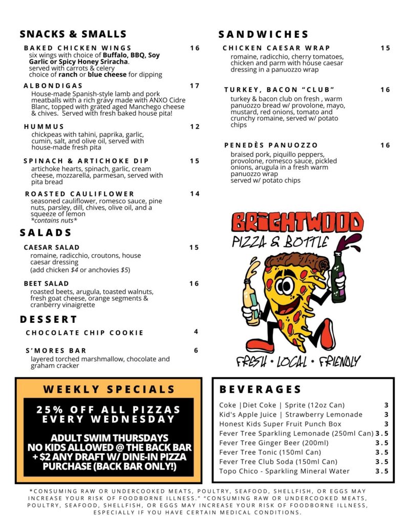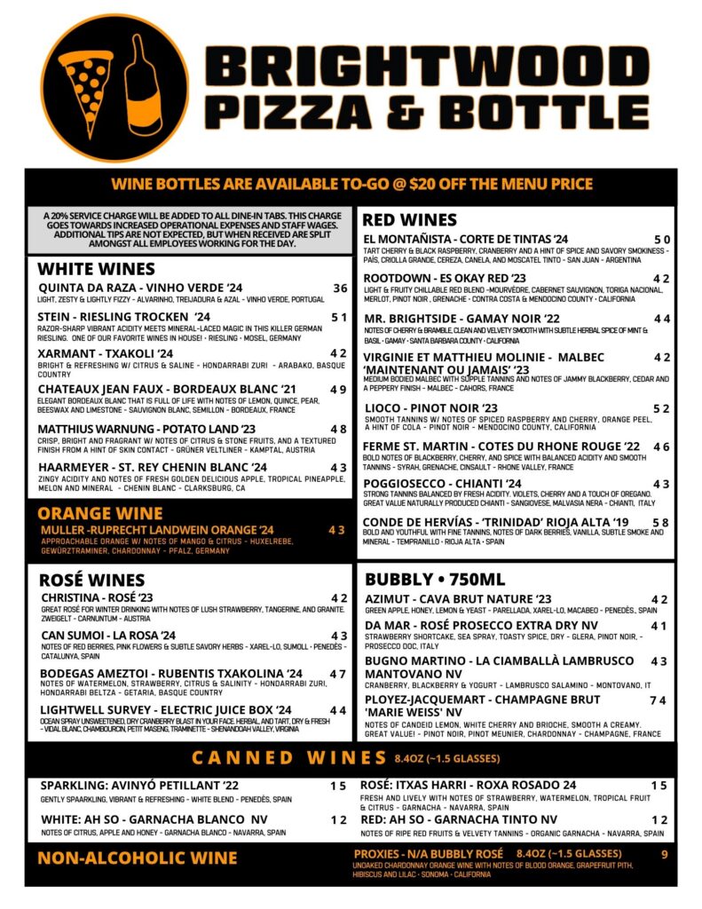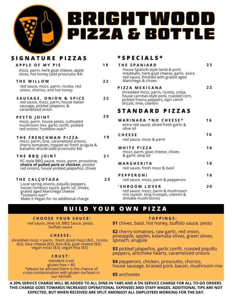 MENUS FOOD BACK BAR FRONT BAR WINE LIST ALL PIZZAS ARE 25% OFF ON TUESDAYS!!! FULL BACK BARDRINK MENUw/ HAPPY HOUR FRONT BARDRINK MENU